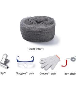 1 tekercs acélgyapot , habverő , rugalmas huzal és fogó , öngyújtó vagy gyufaszál