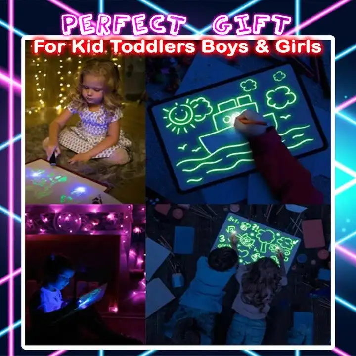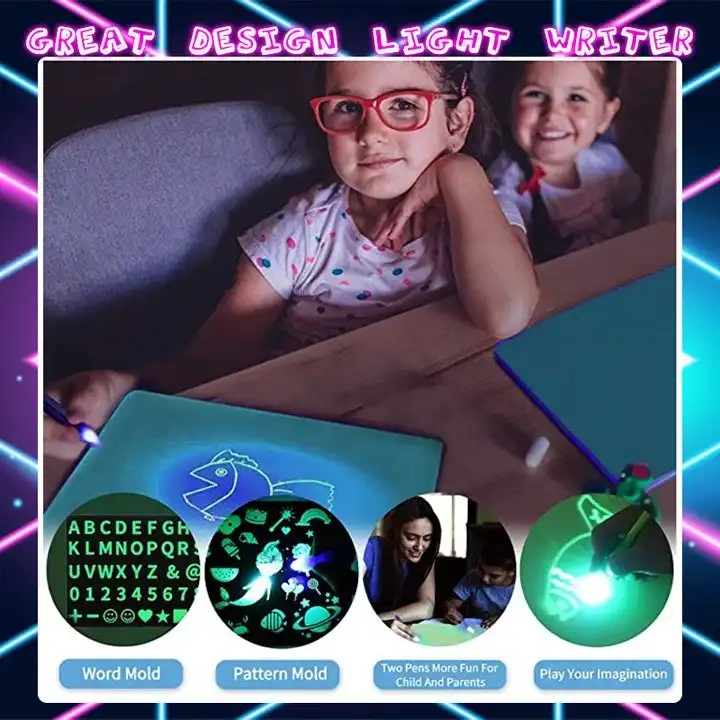 Világító tábla Rajz Fény-Mókás Fénycső Előhívó Graffiti Doodle Rajztábla gyerekeknek Oktatójáték A3 A4 A5