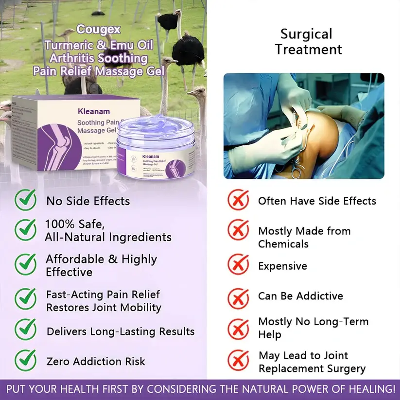 ✅ Erőteljes természetes összetevők – Bio kurkumával és tiszta emuolajjal összeállítva csökkenti a gyulladást, keni az ízületeket és elősegíti a hosszú távú gyógyulást.<br data-start="478" data-end="48 & Szakértői jóváhagyás – Ortopéd szakemberek bíznak meg a biztonságos és hatékony segítségnyújtás érdekében.