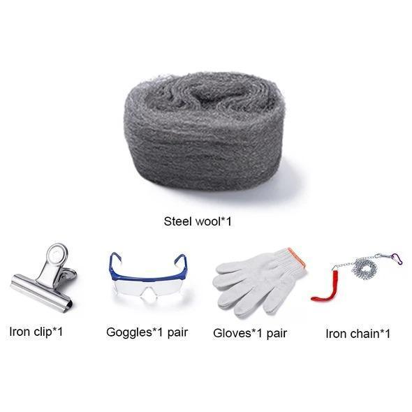 1 tekercs acélgyapot , habverő , rugalmas huzal és fogó , öngyújtó vagy gyufaszál