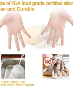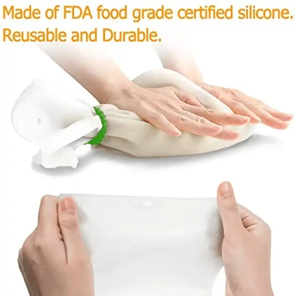 - Kihagyhatatlan kiegészítő a konyhában. Ezzel a csodatésztadagasztó tasakkal hozzáadhatod a hozzávalókat, például lisztet, vizet, tojást, összekeverheted, felkötheted a zacskót és elkezdheted a dagasztást. Ez megakadályozza, hogy a liszt mindenhová kifröccsenjen. Húsok vagy halak pácolásához öntsük bele a hozzávalókat, kössük le a zacskót és tegyük be a hűtőbe. Gyümölcs és zöldség préselésére is használható lekvár készítéséhez