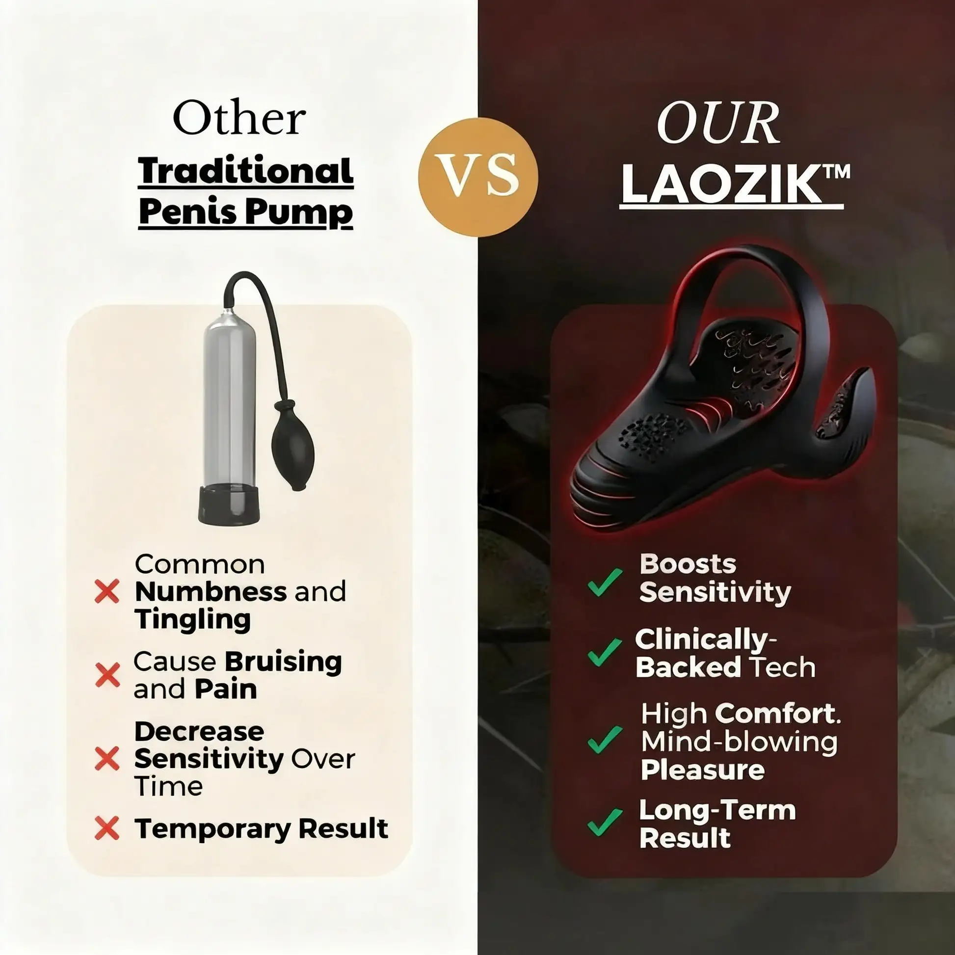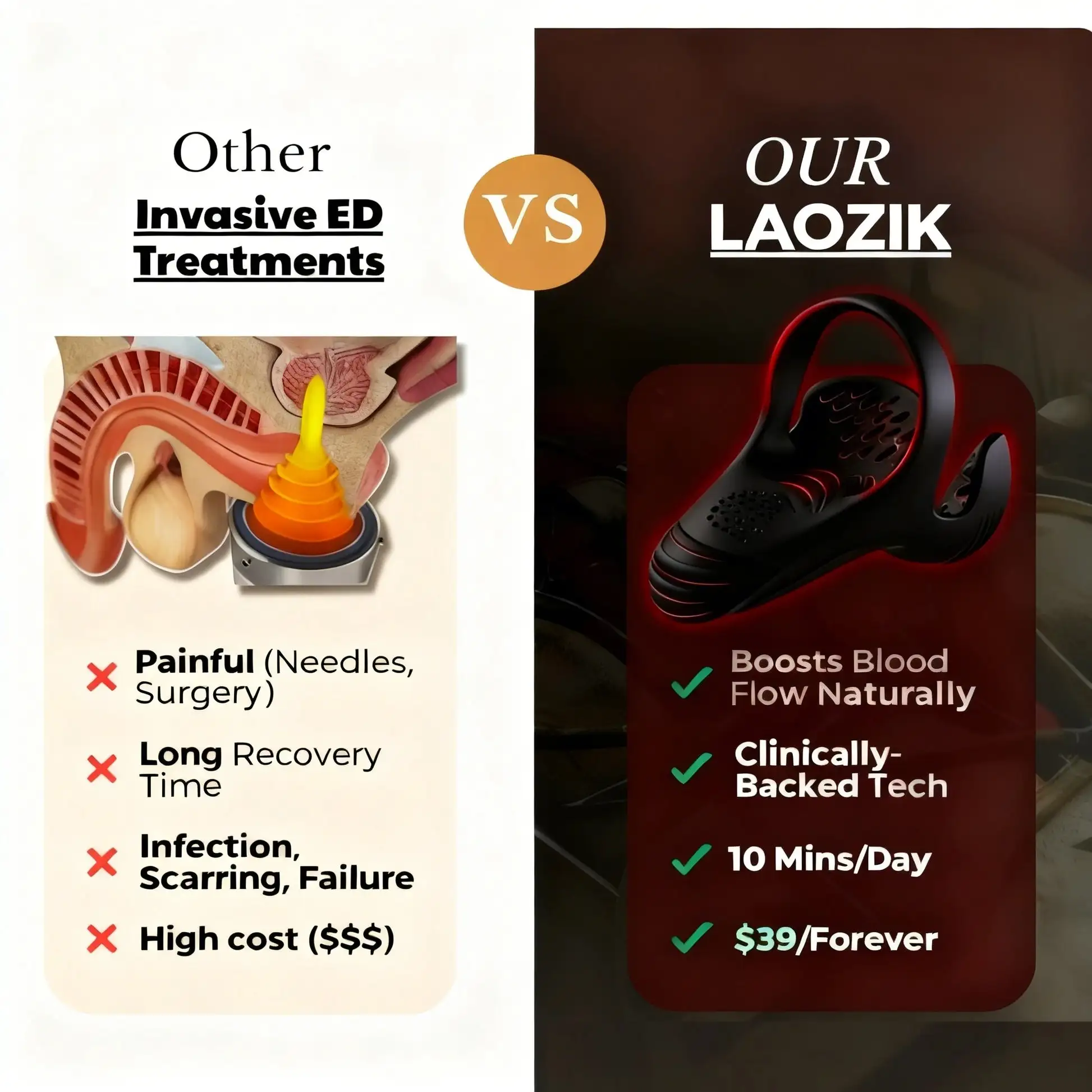 Az olyan eszközök, mint a LAOZIK™, amelyek az alacsony intenzitású lökéshullám-terápiát célzott rezgéssel kombinálják, hatékonyan fokozzák a véráramlást, javítják a szövetek rugalmasságát és támogatják az idegek válaszkészségét. Következetes használat esetén biztonságos, gyógyszermentes módot kínálnak az erekciós funkció javítására és a hosszú távú teljesítmény előmozdítására, a férfiak egészségének helyreállításának klinikai elvein alapulva.”